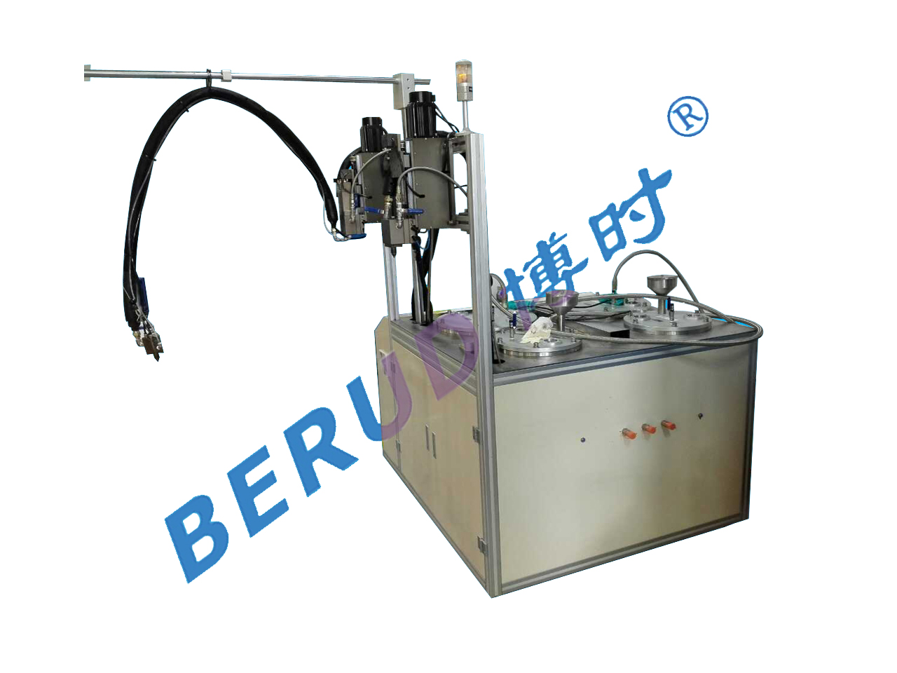 博时BR-SY-6513型双液灌胶机设置两套备料系统,可同时进行两种胶水的操作,相当于两台双液灌胶机的工作,大大提高工作效率,节约成本。几乎适用所有类型胶水,覆盖LED防水电源,汽车灯条,传感器,继电器,电流互感器,家电控制板,安定器,蓄电池,变压器,工业电容等需双液灌胶的产品,凭借其优异的性能,灌胶无气泡,1台机器可替代7~8个人工,机器随时灌随时配,节约胶水,灌出产品一致性强,电脑控制操作更简便等优点。也可配合生产线使用。